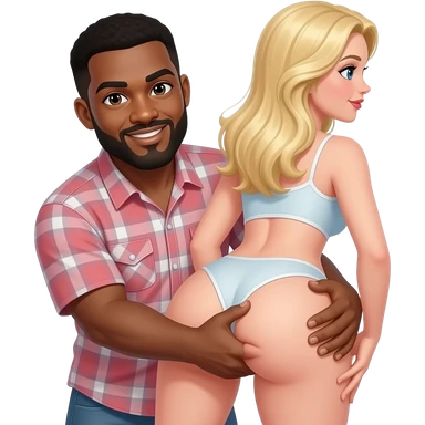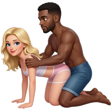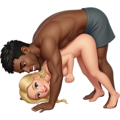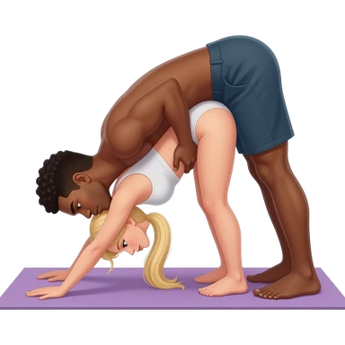 Naked Black man squeezing naked Blonde woman downward dogg emoji