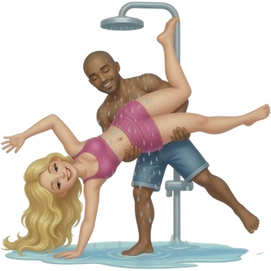 Topples Blonde girlfriend taking a shower together with black boyfriend with bald head emoji