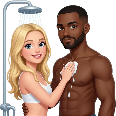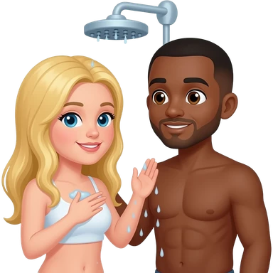 Blonde girlfriend taking a shower with black boyfriend with bald head emoji