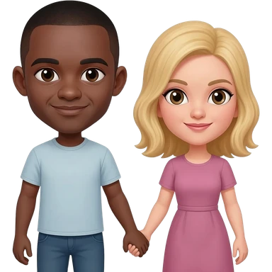 Black man with shaved head holding hands with blonde woman emoji