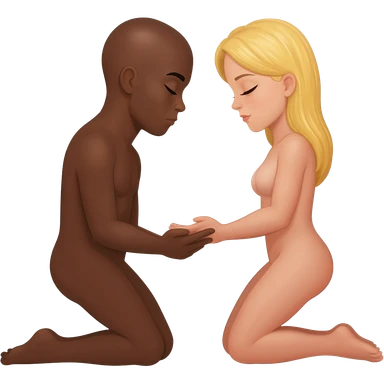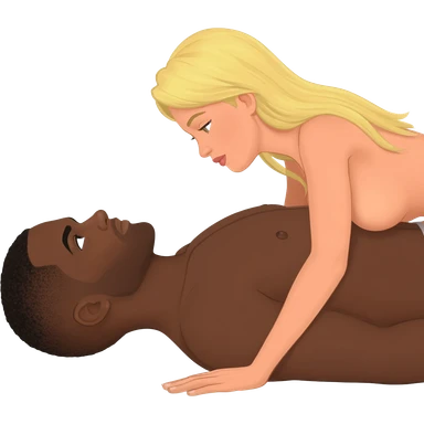 Black man with shaved head in missionary position with blonde woman emoji