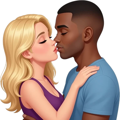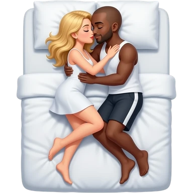 Blonde woman with black bald boyfriend making sweet love in bed emoji