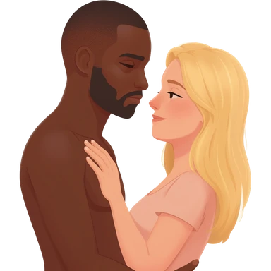Black man hugging blonde woman white woman emoji