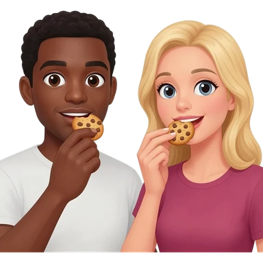 Black man eating cookies with blonde woman emoji