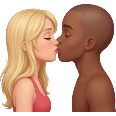 Blonde woman kissing black man with shaved head emoji