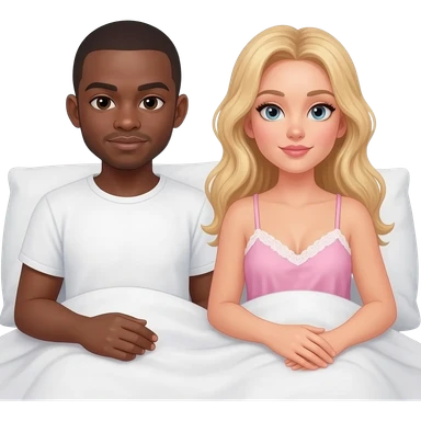 Black man with shaved head in bed with blonde woman emoji