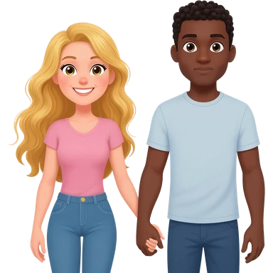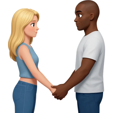 Blonde woman holding hangs with black man with shaved head emoji
