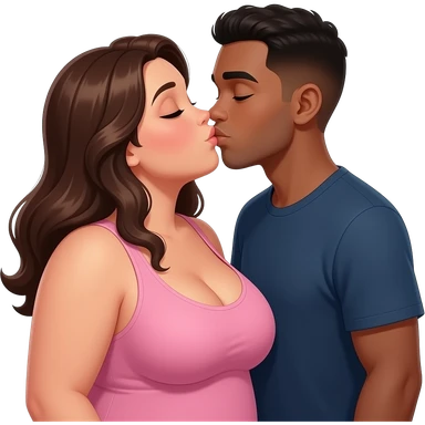 Fat voluptuous brunette with big boobs kissing black boyfriend emoji