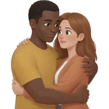 Black man hugging white woman emoji
