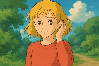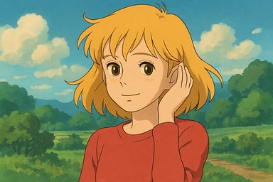 A girl yellow hair brown eyes red Just Cool Women's Long Sleeve Cool T-Shirt touching to the ear emoji