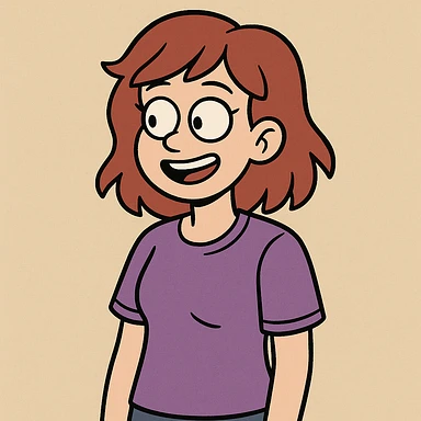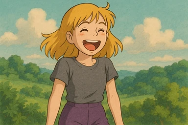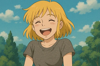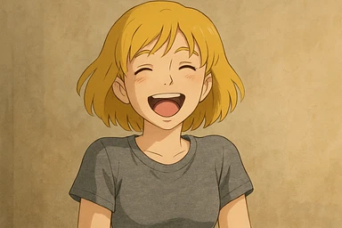 A girl yellow hair brown eyes grey Women's just t's short triblend t-shirt purple trousers laughing emoji