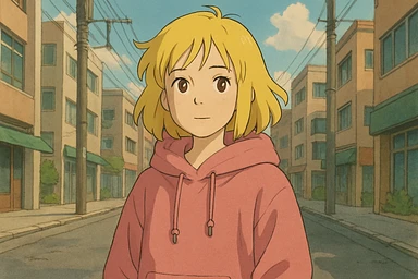 A girl yellow hair brown eyes pink Urban Heavy Loose Fit Hood Sweat emoji