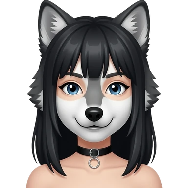 wolf boy black hair human face asian feminine add black collar pale skin emoji