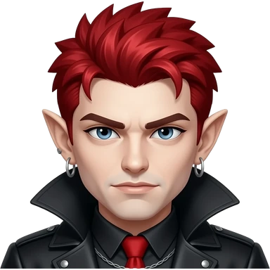 The vampire emoji features spiky red emo hair and wide earlobes. emoji