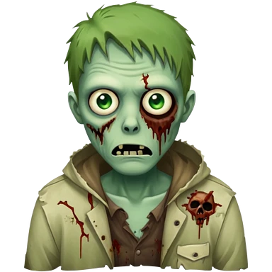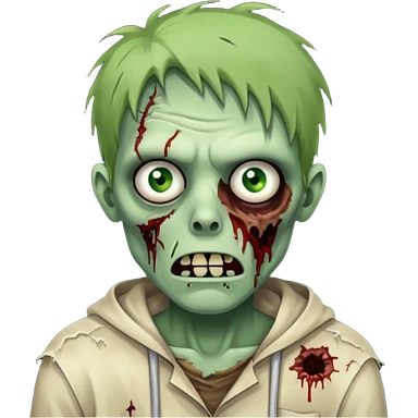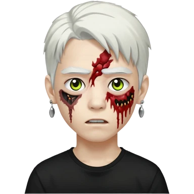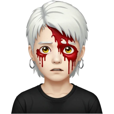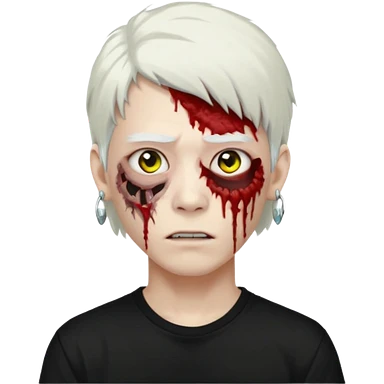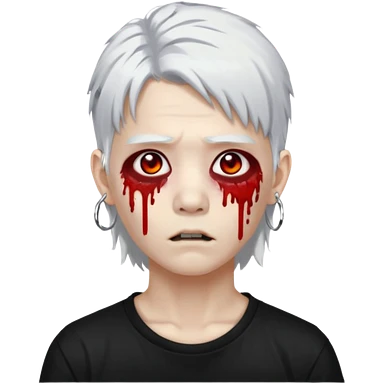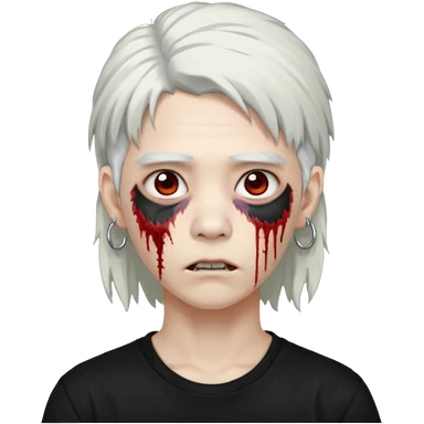 ok make a zombie avatar that has pale skin, young, asian, mullet hair, white hair with earrings wearing just a black T shirt white blood from the eyes emoji
