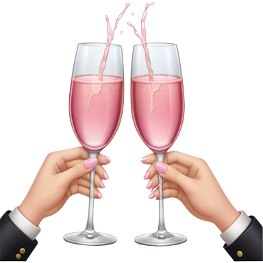 champagne glasses with pink champagne giving cheers with two hands five fingers emoji