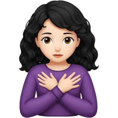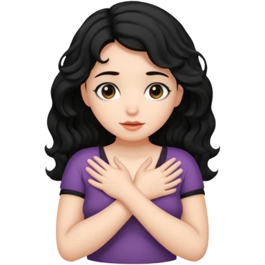 Naked girl, bare chest, bare hips, shy, black wavy hair, naked, hiding boobs emoji