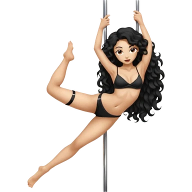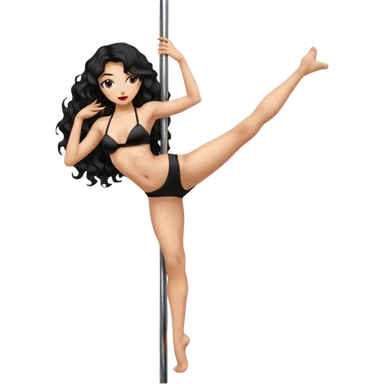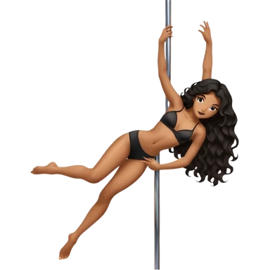 Naked girl, bare chest, bare hips, pole dance pose, sexy pose, long black wavy hair emoji