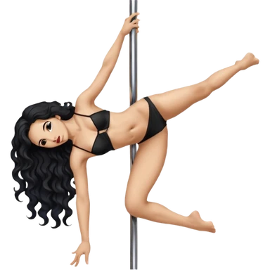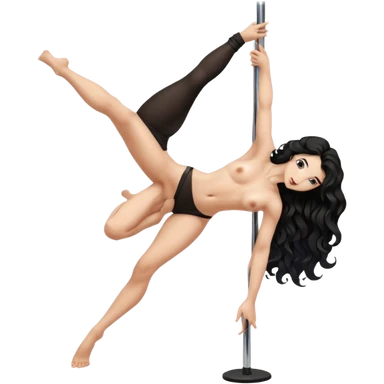 Naked girl, bare chest, bare hips, pole dance pose, sexy pose, long black wavy hair, full body nude, sexy, naked emoji