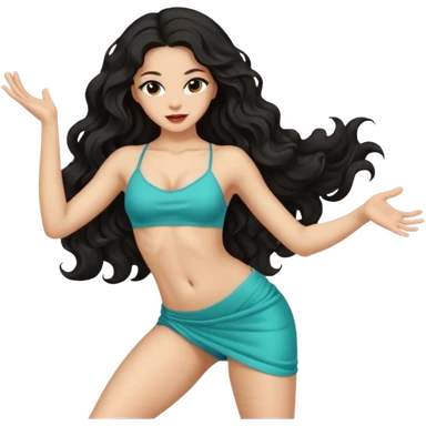 Naked girl, bare chest, bare hips, sexy dance pose, sexy pose, long black wavy hair emoji