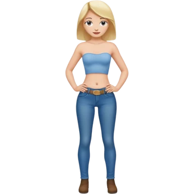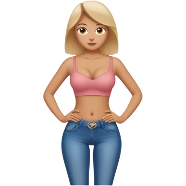 Girl in tight jeans, topless, hands on hips emoji