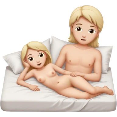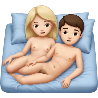 A nude girl and a nude boy, laying in bed emoji