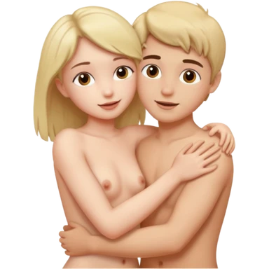 A nude boy and a nude girl, having sex emoji