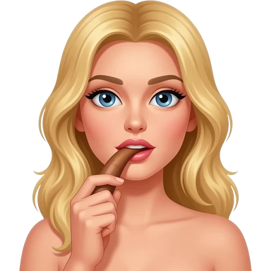 Naked woman tits out long blonde hair green eyes full body skinny legs no clothing kneeling sucking an eggplant emoji