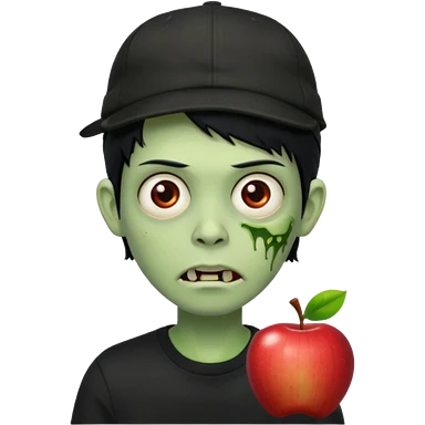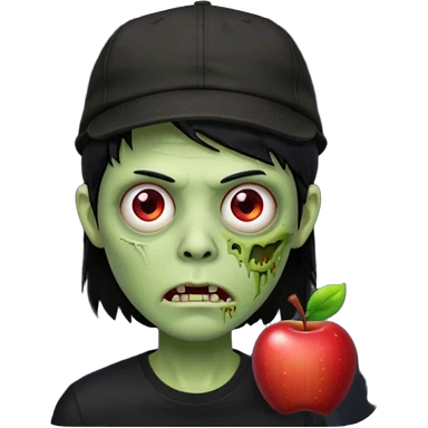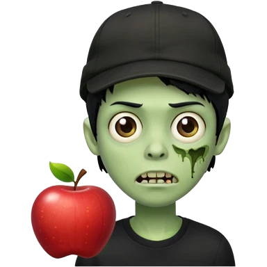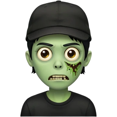 Green zombie, black hair, designer cap turned to the left, black shirt. Apple iOS style. emoji