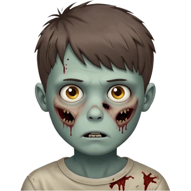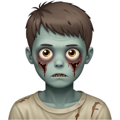 zombie boy youthful face, messy brown short hair in fringe haircut, closed mouth, without wrinkles emoji
