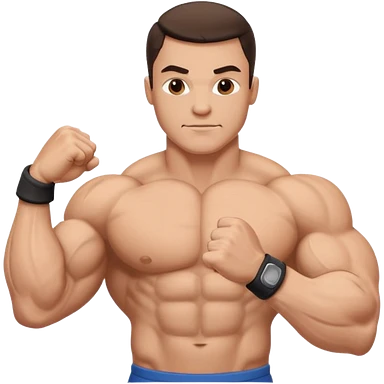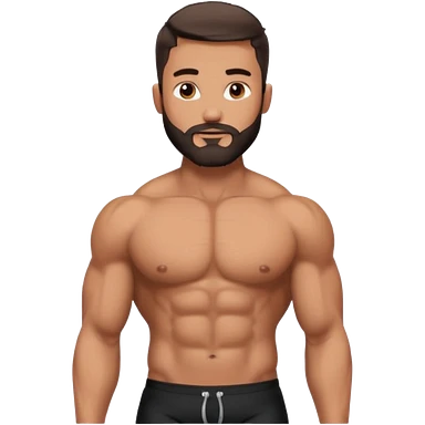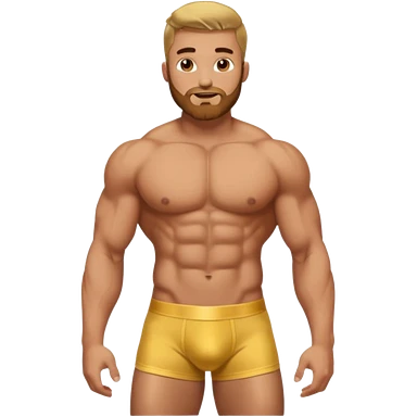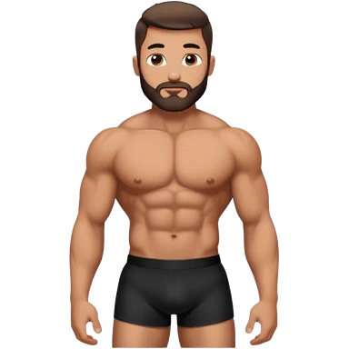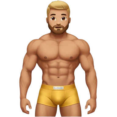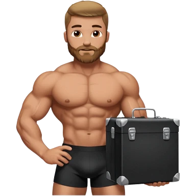 Bodybuilder male with stubble beard and low fade haircuts, shirtless, wear black brief box emoji
