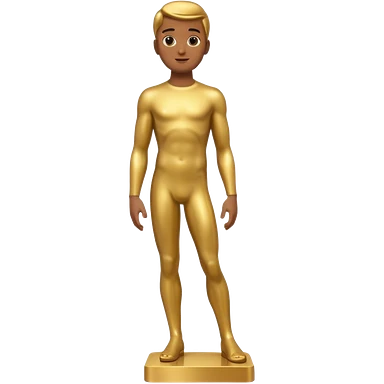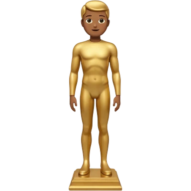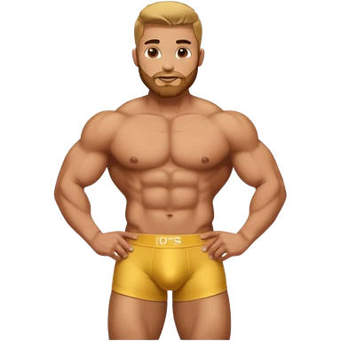 Gold statue of bodybuilder man, stubble beard, low fade haircut, shirtless wear golden brief box underpants emoji