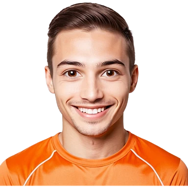 радостно удивленный мужчина по пояс в оранжевой футболке emoji