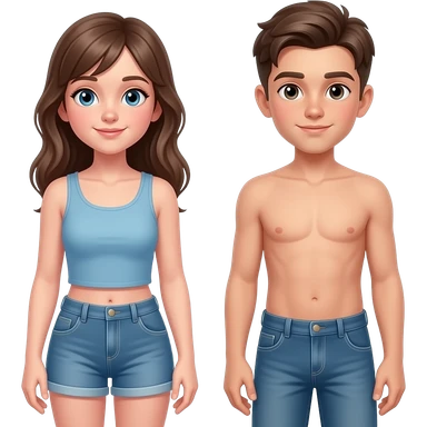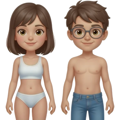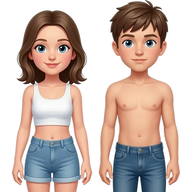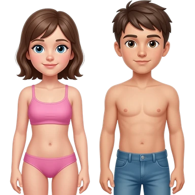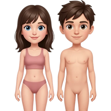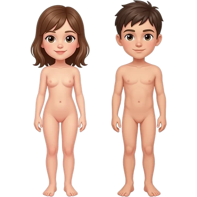 Mädchen 14 jahre alt und daneben einen Jungen 14 jahre alt. Komplett nackt und ganzen Körper sehen. emoji