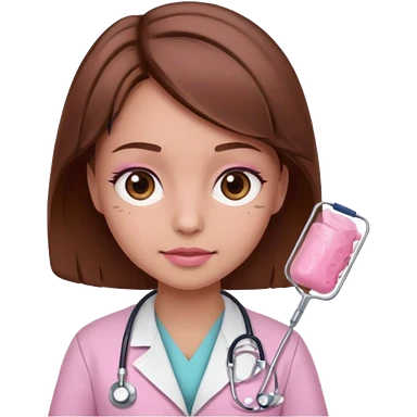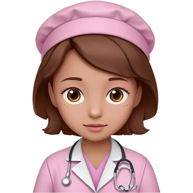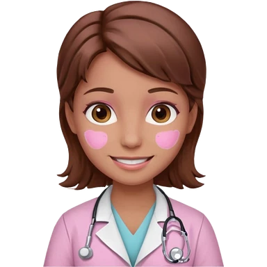 doctor, pink, she, cute, hair brown, eyes brown, scrub baby pink emoji