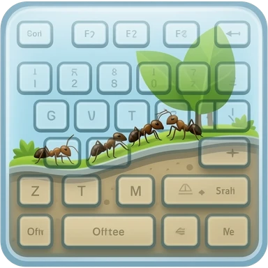 antfarm keyboard, in the shape of a standard computer keyboard, with an ant on it emoji