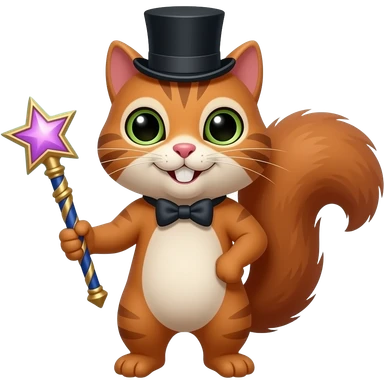 A cat head with a squirrel body, a magic tool, and a top hat and bow tie. emoji