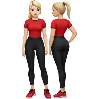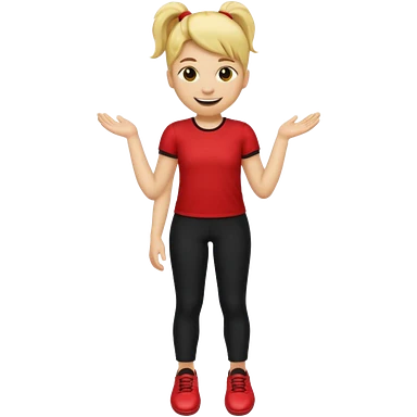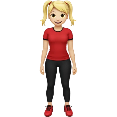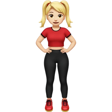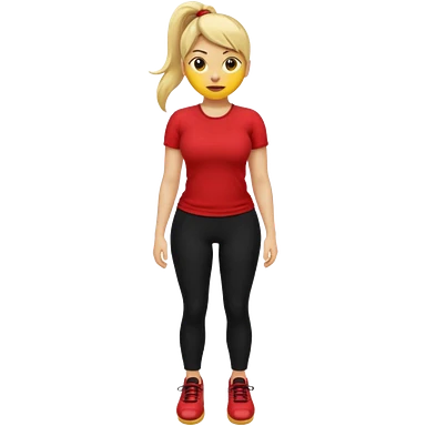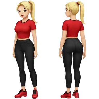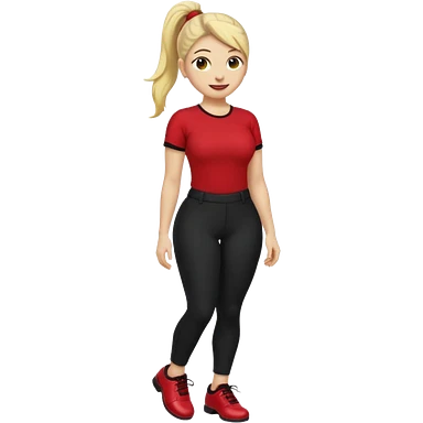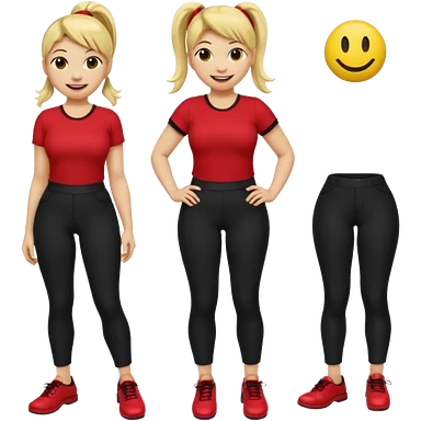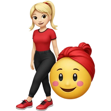 A smiley yellow emoji (like π) with a ponytail, red shirt, big breasts, black pants, ass and red shoes. Also Make it more like emojis like πππβΊοΈππ₯°π emoji