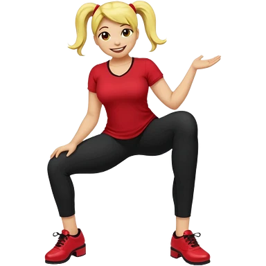 A smiley yellow emoji (like π) with a ponytail, red shirt, big breasts, black pants, ass and red shoes emoji