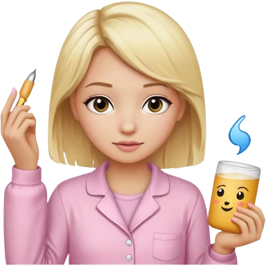 Girl with blonde hair makeup on and in light pink pj's emoji