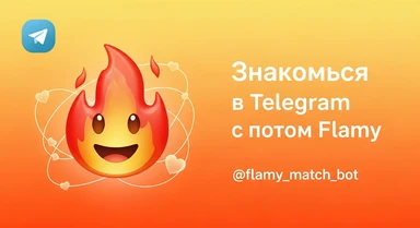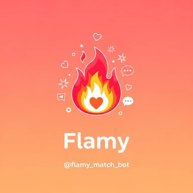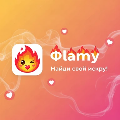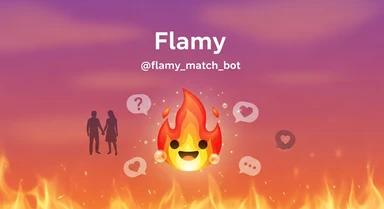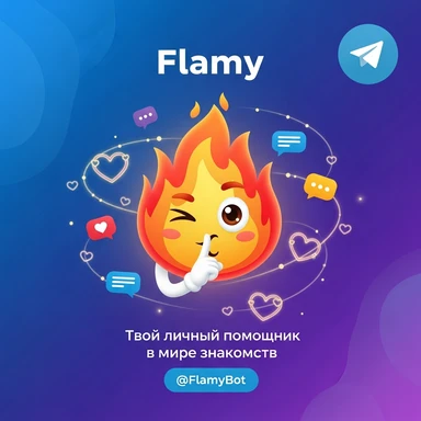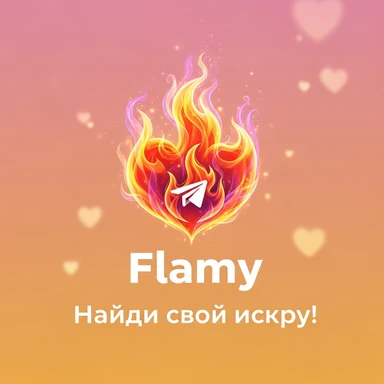 у меня в телеграме есть бот для знакомств Flamy. Иконку бота прикрепил. мне нужно рекламное изображение для постов в тг id бота: @flamy_match_bot emoji