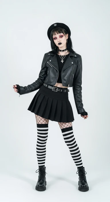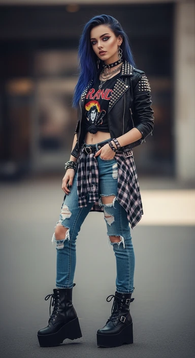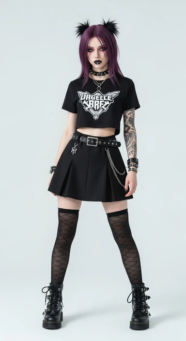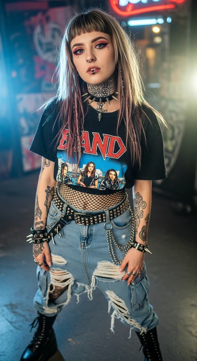 я создаю ИИ блогера, сгенерируй очень красивую девушку в полный рост (должно быть видео ее лицо и тело) на вид ей должно быть лет 19, стиль альтушка, вес 50-55 кг, девушка должна занимать весь кадр на изображении emoji