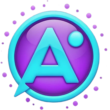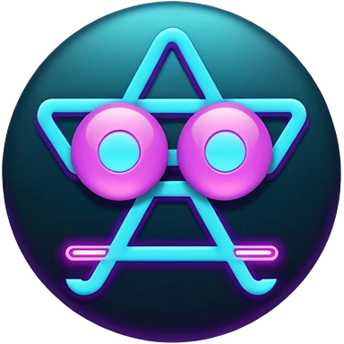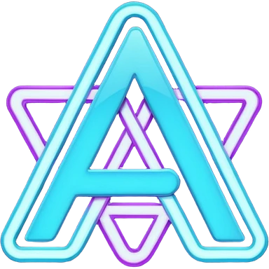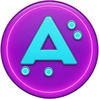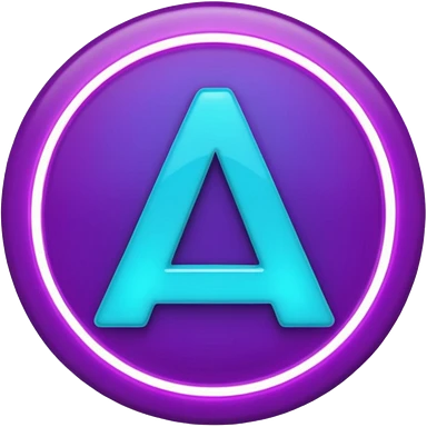 futuristic minimalistic emoji icon, letters "A" formed by three glowing digital lines representing Storm, Atom and NoizeGames, neon purple (#8B5CF6) and cyan (#00E0FF) on dark background, modern tech style, 1:1 aspect ratio emoji