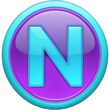 futuristic minimalistic emoji icon, letters "N" formed by three glowing digital lines representing Storm, Atom and NoizeGames, neon purple (#8B5CF6) and cyan (#00E0FF) on dark background, modern tech style, 1:1 aspect ratio emoji
