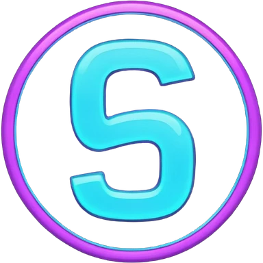 futuristic minimalistic emoji icon, letter "S" formed by three glowing digital lines representing Storm, Atom and NoizeGames, neon purple (#8B5CF6) and cyan (#00E0FF) on dark background, modern tech style, 1:1 aspect ratio emoji