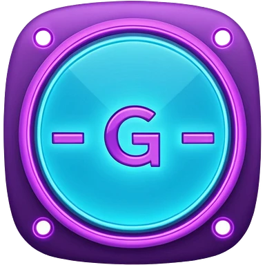 futuristic minimalistic emoji icon, letters "G" formed by three glowing digital lines representing Storm, Atom and NoizeGames, neon purple (#8B5CF6) and cyan (#00E0FF) on dark background, modern tech style, 1:1 aspect ratio emoji