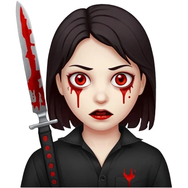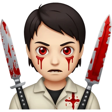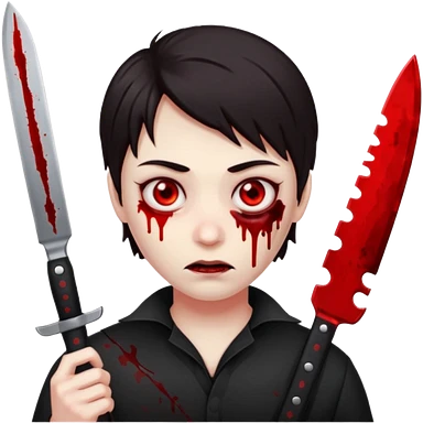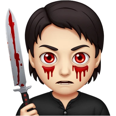 RED EYES, EVIL EMOJI, KILLER EYES, DARK HAIR, BLOODY EYES, 1 KNIFE IS IN THE HAND emoji