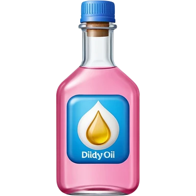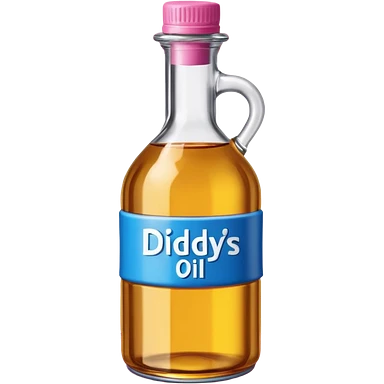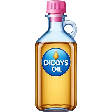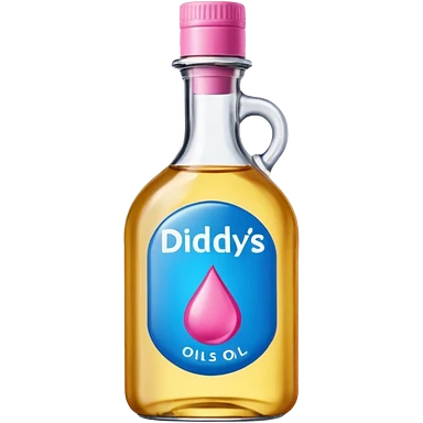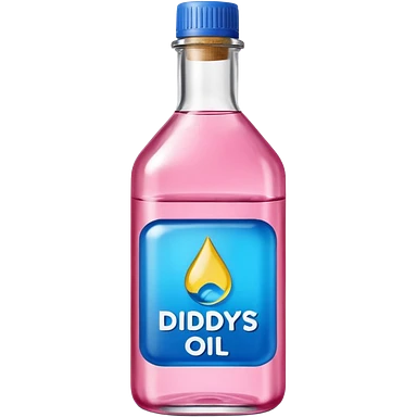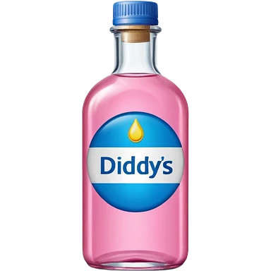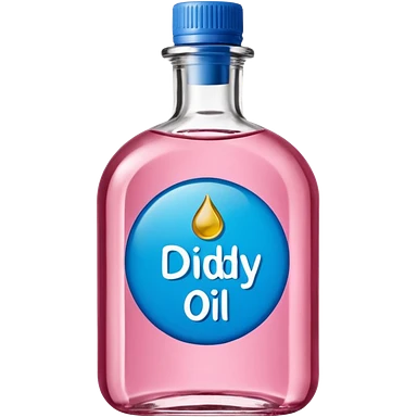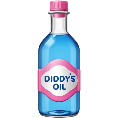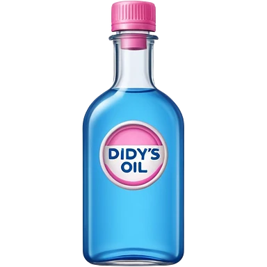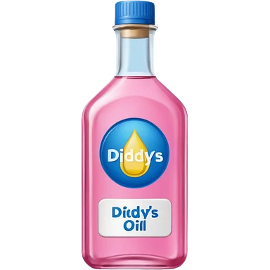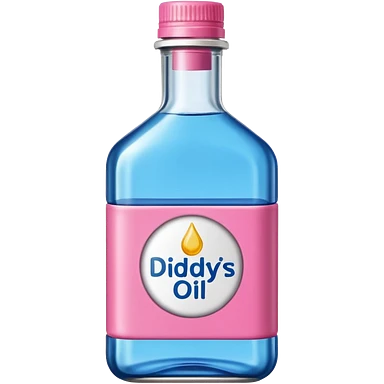 bottle of oil blue top pink outside with logo that says Diddys Oil Johnson and Johnson bottle emoji