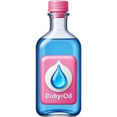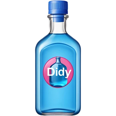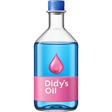 bottle of oil blue top pink outside with logo that says Diddy oil emoji