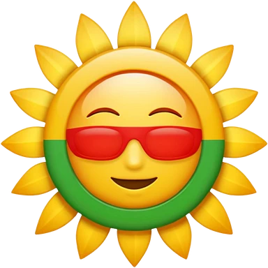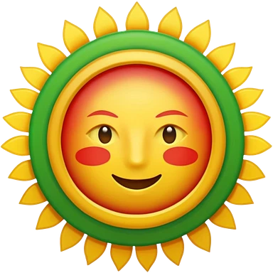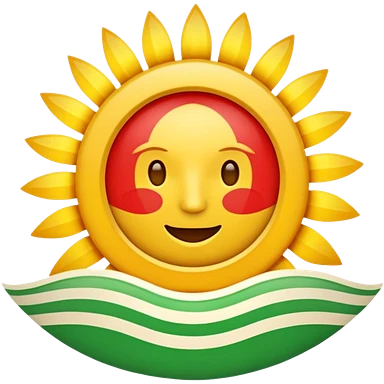 A flat emoji-style icon with three horizontal stripes: red on top, white in the middle, green on the bottom. A bright golden sun in the center with exactly 21 evenly spaced rays. Simple shapes, bold colors, no text, no gradients, transparent background, clean system-emoji look. emoji
